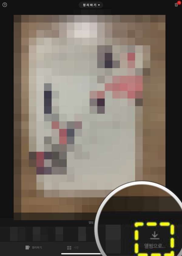 제일 우측에 '앨범으로...' 아이콘을 선택하면 새 앨범을 만들 수 있다. 앨범을 만들 때는 앞에 숫자를 넣는 것을 추천한다. 예를 들면 '0. 내사진'과 같이 작성하는 것이 좋다. 앨범명을 기준으로 자동으로 내림차순 정렬되기 때문에, 이렇게 하는 것이 나중에 순서를 바꾸기 좋다.