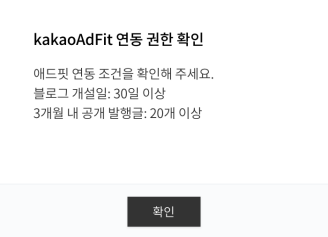 연동조건이 어려운 것은 아니지만, 과거에는 없던 부분이라 아쉬웠다. 여기서 포기하기는 아쉬워 카카오 애드핏을 직접 방문해서 가입했다. 생각보다 쉽게 가입과 승인이 완료되었다. 카카오 애드핏에 직접 가입하고 싶다면 아래 링크를 참조하기 바란다.