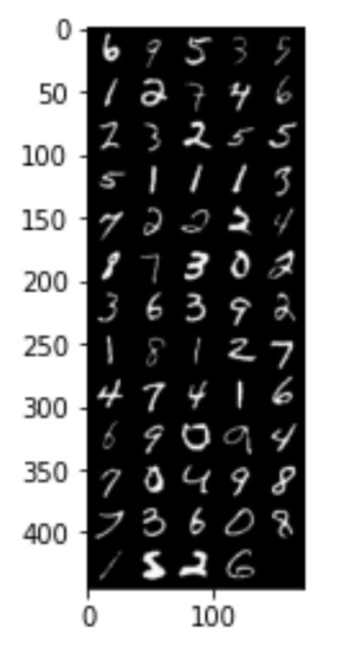 make_grid함수를 이용해서 MNIST결과를 출력해보았다. make_grid에 nrow는 하나의 행에 몇 개의 그림을 보여줄지 입력하는 파라미터이다.